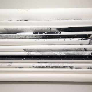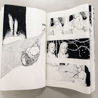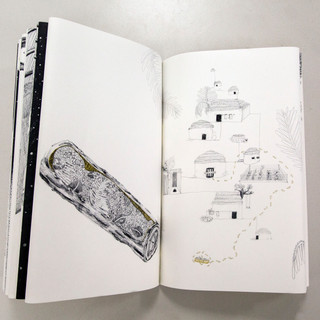 The piece of work I will talk about is my most recent one, a wordless A3 open A2 book all hand drawn with details in gold embroidery.